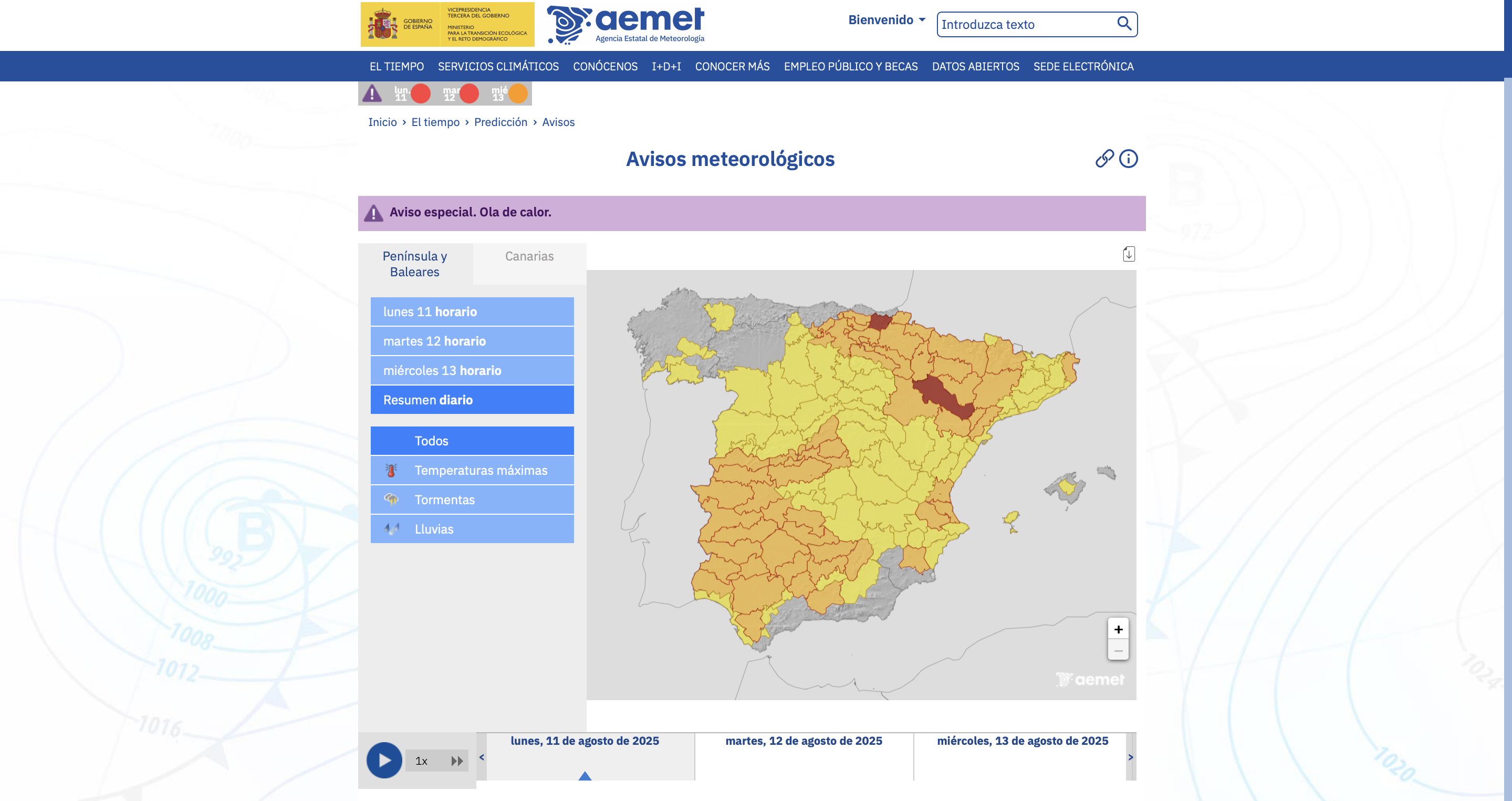 Imagen: Avisos meteorológicos. Fuente: AEMET. Licencia