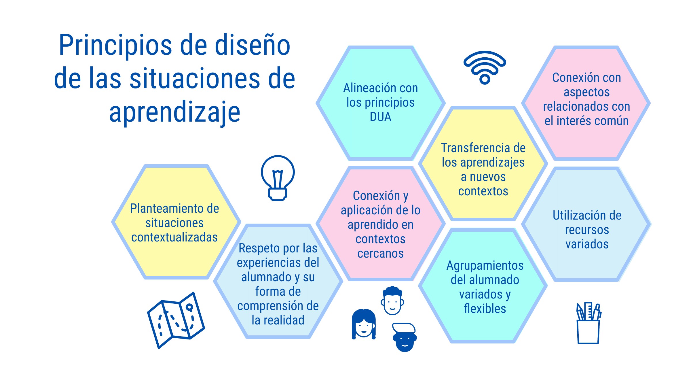 Las situaciones de aprendizaje deben estar contextualizadas, tanto desde los aspectos pedagógicos y didácticos que configuran la programación, el proyecto educativo y curricular y los diversos programas que se desarrollan en el centro escolar, como en el entorno socio-cultural y en las expectativas del alumnado. Son diseñadas por el profesorado, ya que ellos son los que conocen a su grupo-clase y el contexto en el que se desarrolla la enseñanza. Con estas tareas o actividades, el profesorado ha de movilizar diversas competencias y saberes propios de la materia, implicando procesos cognitivos y emocionales y generalizando los aprendizajes de forma significativa. En la mayoría de estas situaciones de aprendizaje confluyen varias competencias, en ocasiones interdisciplinares. El desarrollo de las tareas o actividades llevadas a cabo implica articular las distintas actuaciones para que se potencien entre sí; son, por tanto, actuaciones que requieren utilizar los contenidos vinculados a las diversas competencias.