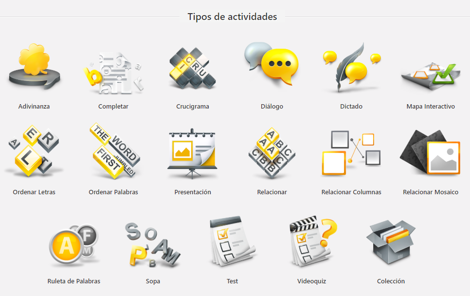 Educaplay dispone de distintos tipos de actividades: